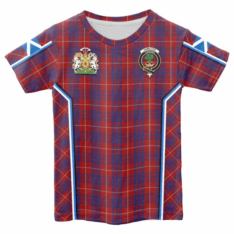Hamilton Tartan Crest Kid T-shirt Scotland Coat of Arm Flag StyleHighlight Made by Materials: Polyester. About this item Let your kids embrace the timeless appeal of tartan with our kid t-shirts. These shirts celebrate the rich Scottish heritage while offe