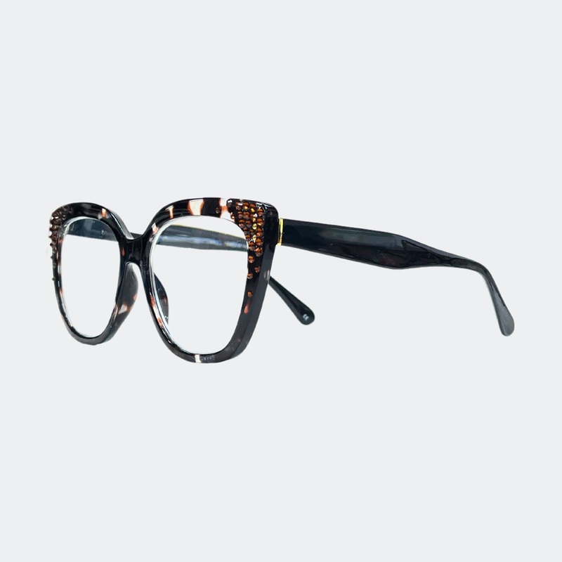 This stylish frame features hand-placed crystals, adding a touch of luxury to these lightweight, high-quality reading glasses. With a 5.5 inch width, this design exudes elegance and comes with a case and pouch for convenience.