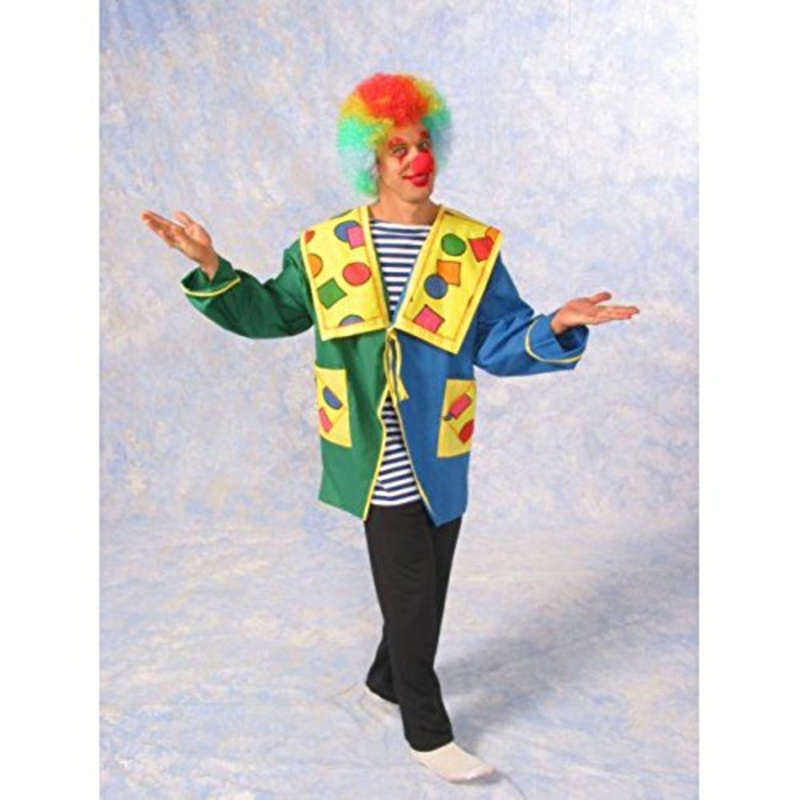 Funny! Hilarious!Includes: Cotton blend jacket with real pockets and front velcro closure.Jacket is 36" long and has fun shapes on the pockets and 8" wide lapels.Size: Adult One Size (up to 50).A smaller person can wear it as an oversized jacket.A26370