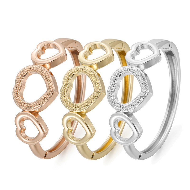 Elevate your style with this stunning Heart-shaped Bracelet from Planderful. Crafted from high-quality Titanium Steel Alloy, this bracelet is designed to never fade, ensuring long-lasting beauty. The intricate heart-shaped diamond inlay adds a touch of elegance and glamour to any outfit. Perfect for gifting or treating yourself, this original and personalized opening bracelet is a must-have accessory.