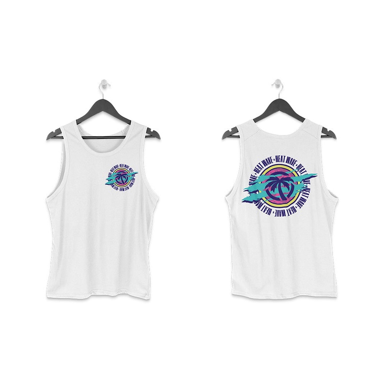 A retro inspired Heat Wave lock up for on a tank. Featuring nothing but NEON colors on a bright white base. 100% Cotton Tank Top - Printed here in the USA.
