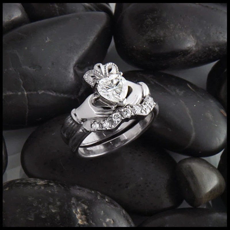 Heritage Claddagh Moissanite & Diamond Wedding Set