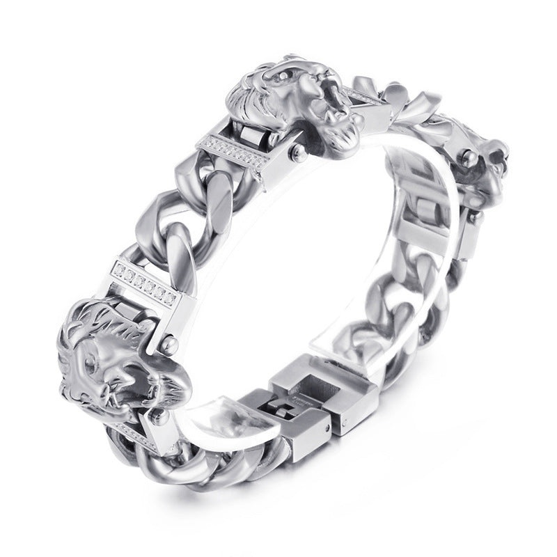 Hip Hop Lion Head Bracelet for Men – Stainless Steel and Titanium Jewelry