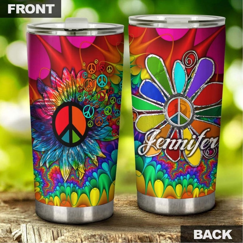 Hippie Colorful Sunflower Peace Lover Freedom Personalized Tumbler-Boho Hippie Tumbler-Hippie Gypsy Bohemian gift for her-sunflower giftGift of Love: A meaningful gift for your friends, family members, wife/husband, bridesmaid/groomsmen, coworkers on birth
