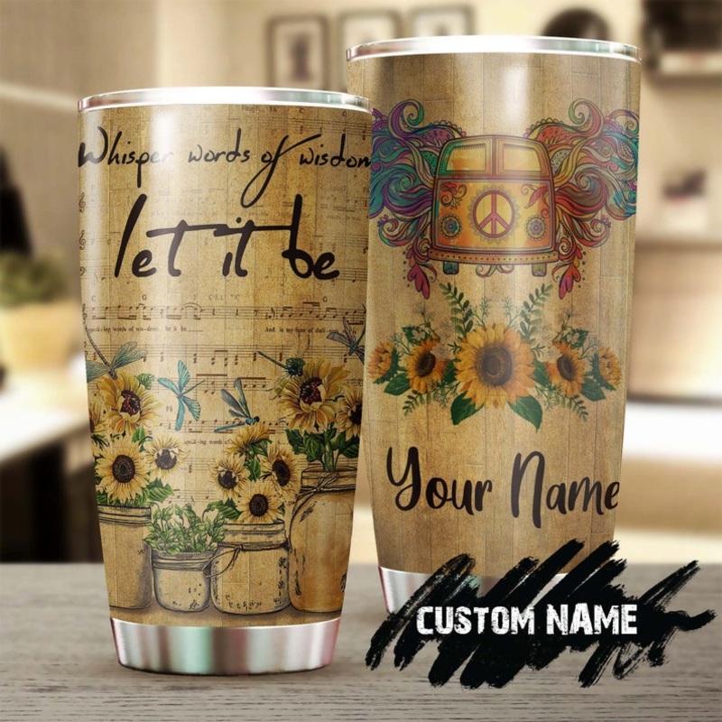 Hippie Vintage Sunflower Whisper Words Of Wisdom Road Trip Personalized Tumbler-Sunflower Tumbler-Gift For Sunflower Lover-Gift for herGift of Love: A meaningful gift for your friends, family members, wife/husband, bridesmaid/groomsmen, coworkers on birthd