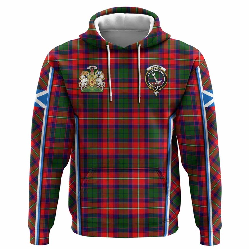 Hopkirk Tartan Crest Hoodie Scotland Coat of Arm Flag Style
