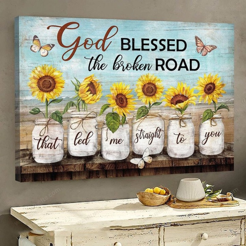 Housewarming Gifts, Christian Decor Jesus Butterfly Sunflower God Blessed – Canvas Print Wall Art Home Decor