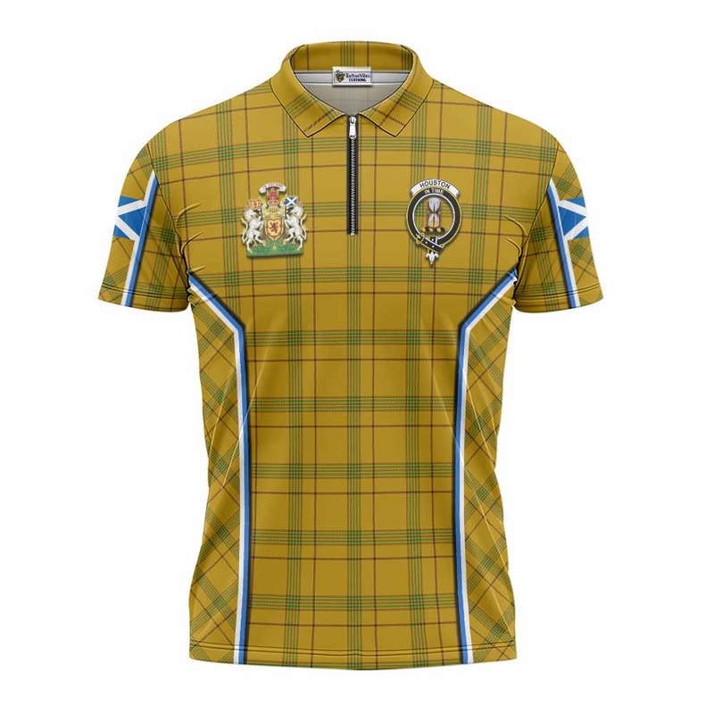 Houston Tartan Crest Zipper Polo Shirt Scotland Coat of Arm Flag Style