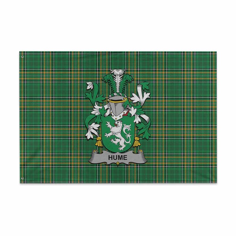 Hume Irish Clan Tartan House Flag with Coat of Arms