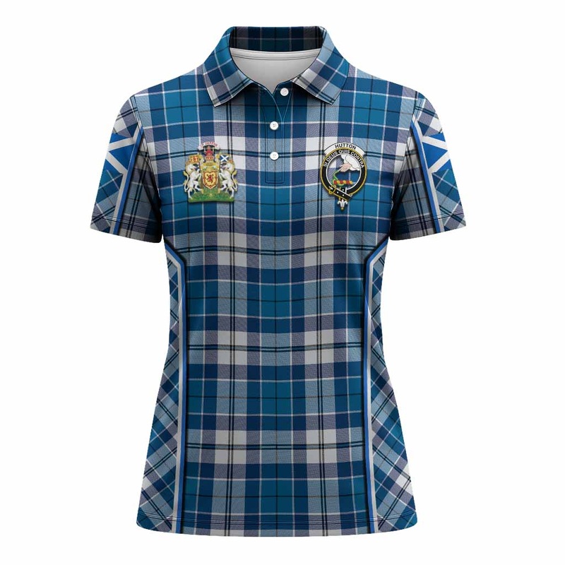 Hutton Tartan Crest Women’s Polo Shirt Scotland Coat of Arm Flag Style