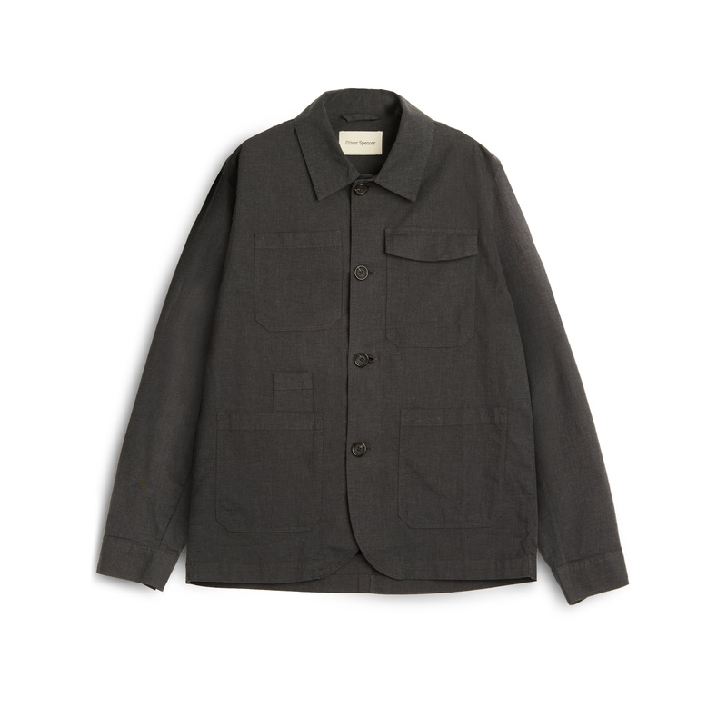 The Hythe jacket is a modern iteration of the chore jacket. This style has been constructed from a beautifully soft charcoal cotton. Functionality comes via four front patch pockets, two rear patch pockets, and a pen pocket.
