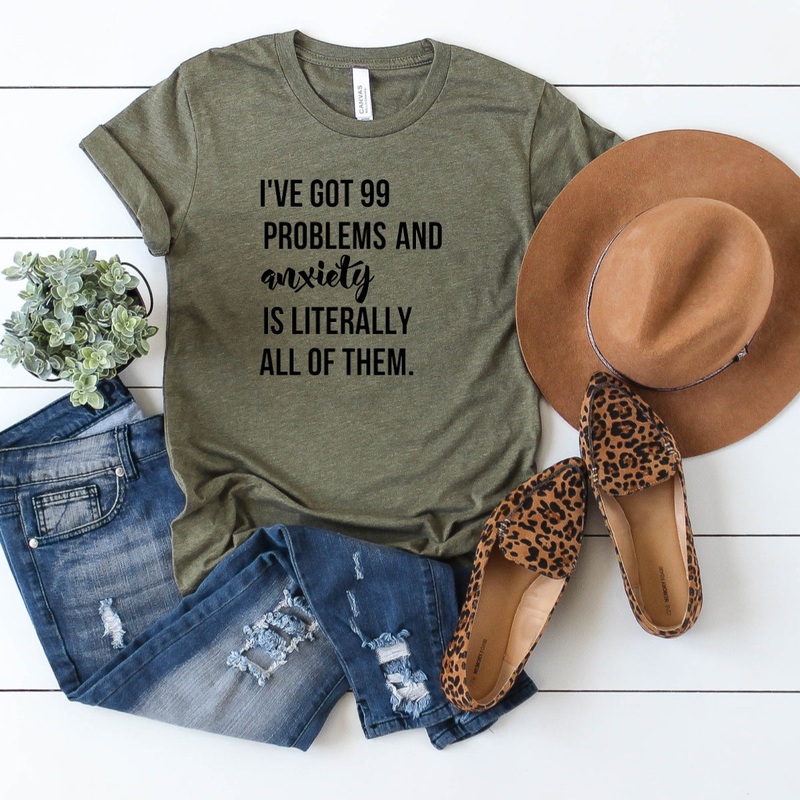 This listing is for our “I Got 99 Problems and Anxiety is Literally All of Them” graphic shirt.