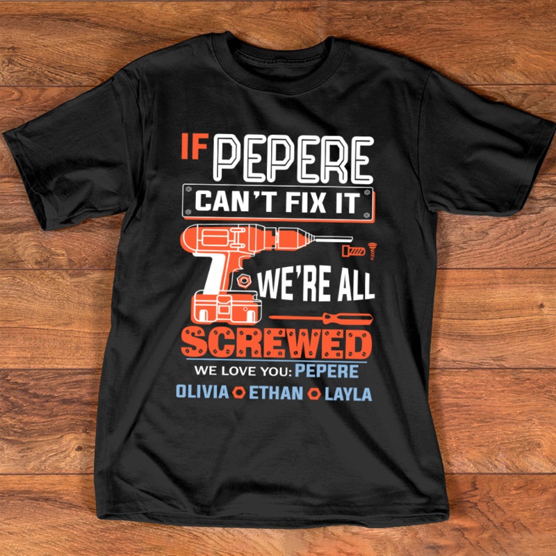 If PEPERE can't fix it we're all screwed grandkidsGreat as Birthday gifts or Holiday presents. This adorable item can be designed upon anyone's wish with any title.Please enter:1. Nickname: Papa, Grandpa, Pawpaw, Pop-Pop, Papaw ...etc.2. Kids' Names wanted