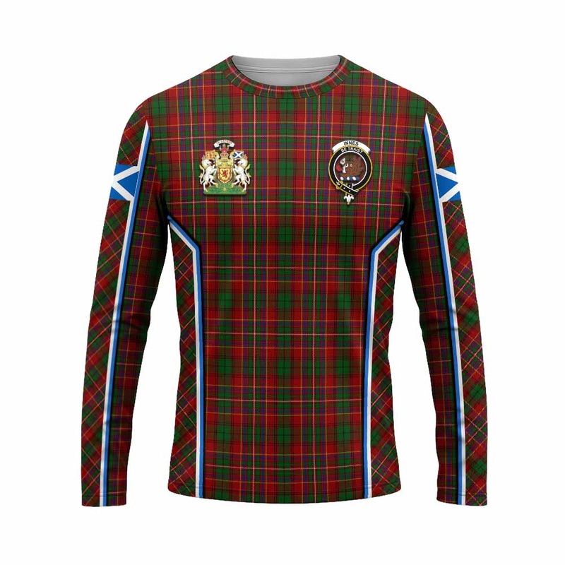 Innes Tartan Crest Long Sleeve T-Shirt Scotland Coat of Arm Flag Style