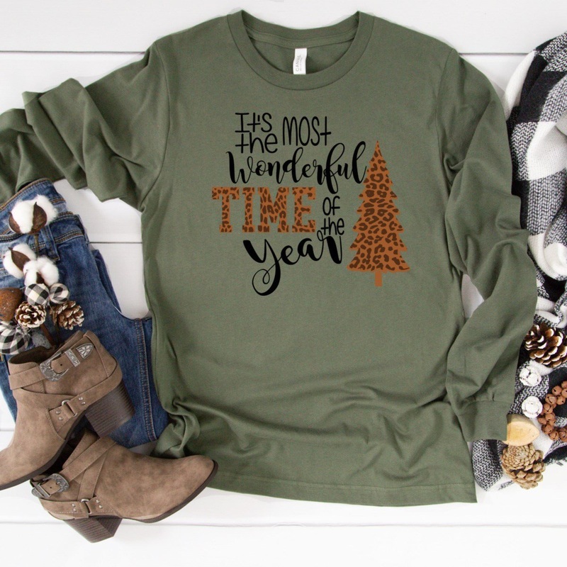 It’s The Most Wonderful Time Of The Year Leopard Print-Long Sleeves-Plus Sizes