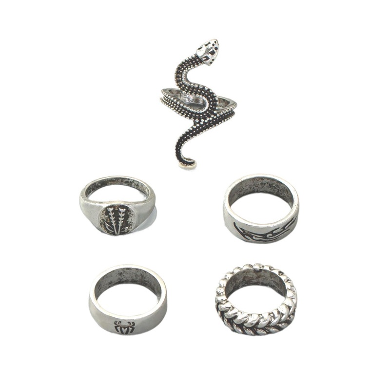 Japanese and Korean Retro Fusion Snake Head Geometric Rings Set of 5 – Wholesale Jewelry