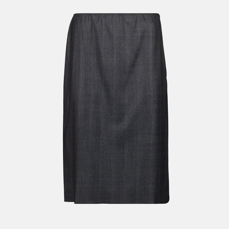 Jupe en laine carreaux de Prada pour femme. Cette pice fait partie de la collection Printemps-t 2025 et prsente une coupe crayon avec un imprim carreaux vintage.