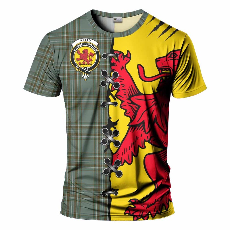 Kelly Tartan Family Crest T-shirt Lion Rampant Honor