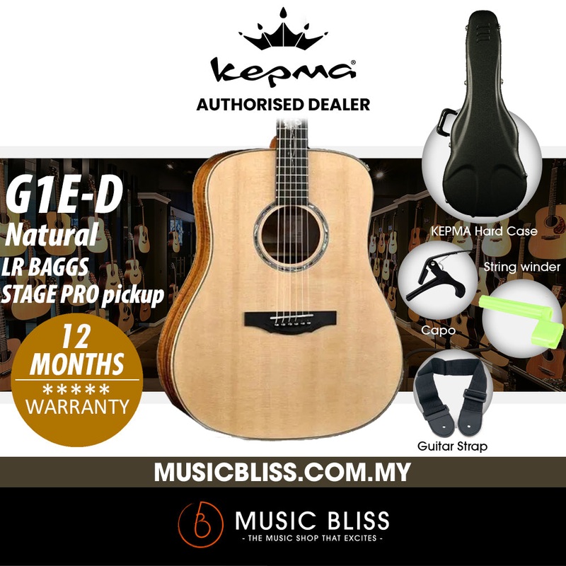 KEPMA G1E-D Solid Sitka Spruce Top Dreadnought Acoustic Guitar with LR BAGGS STAGE PRO pickup - Natural (G1D/G1ED/G1 ED)PROMOTIONKepma Hardshell case Included, String Winder, Guitar Strap, Capo.SPECIFICATIONSEffective Scale: 647.25mmTop Panel Bracing Struc