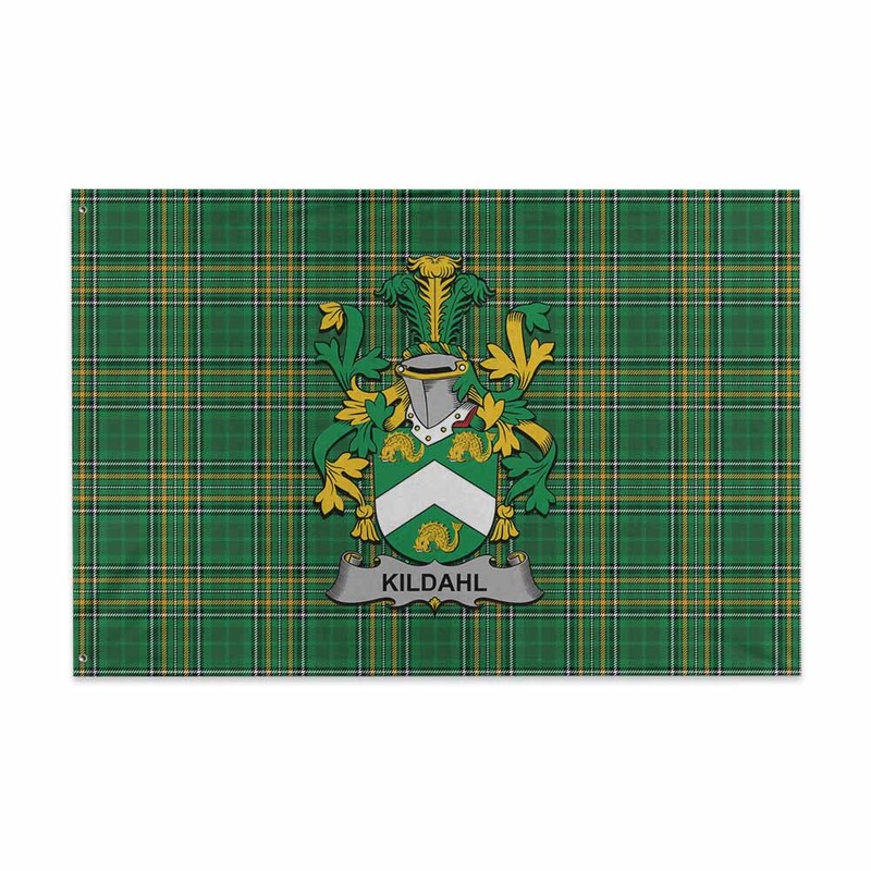 Kildahl Irish Clan Tartan House Flag with Coat of Arms