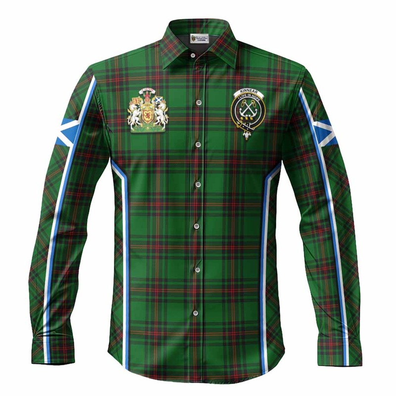 Kinnear Tartan Crest Long Sleeve Button Shirts Scotland Coat of Arm Flag Style