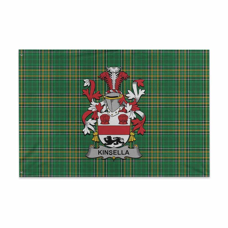 Kinsella Irish Clan Tartan House Flag with Coat of Arms
