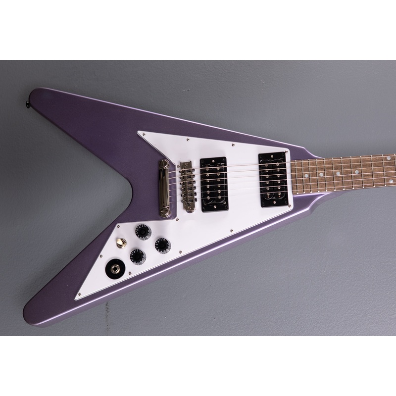 Excellent Condition, Purple Metallic, Mahogany body, 12" radius Indian Laurel fingerboard with dot inlays and medium jumbo frets on a Rounded C shaped Mahogany neck with volute, 24.75" scale length, 1.69" nut width, Gibson USA Calibrated T-Type neck and br