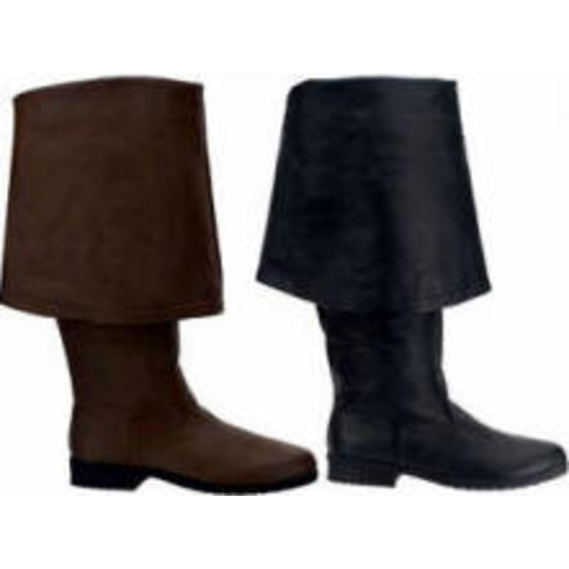 Pirate/Swashbuckler or Renaissance BootReal/Authentic leather w/fabric lining & padded foot insert. 1.5" heel & rubber soles. 11" Bell Cuff. Can be worn 2 ways.Cuff can be unfolded & boot worn thigh high.Color: Brown, BlackMen's Size: 8, 9, 10, 11, 12, 13,