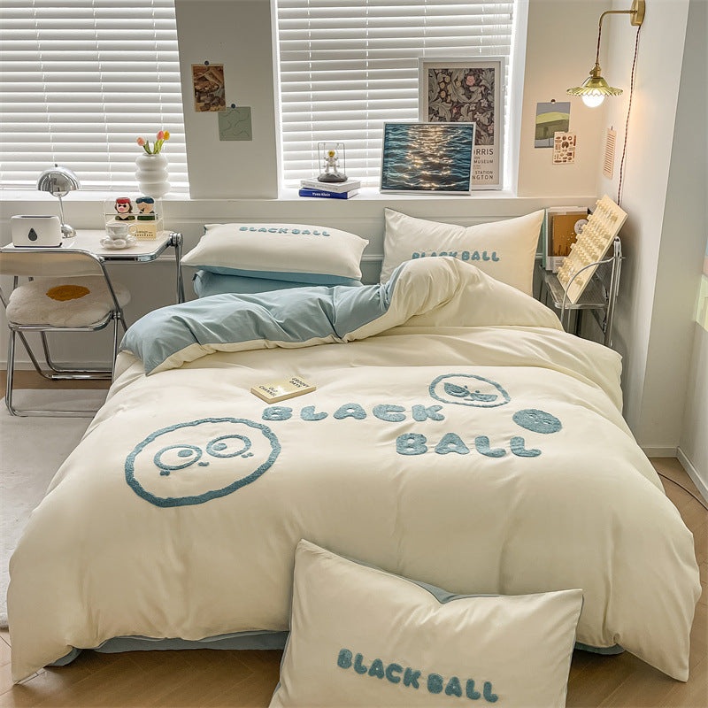 Korean Cartoon Cotton 4pcs Bedding Set Boy and Girl Bed Sheet Quilt Cover 1077