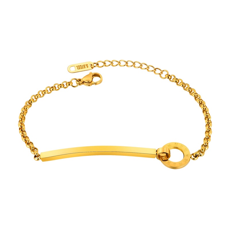 Introducing the exquisite Ladies Stainless Steel Pearl Chain Bent Roman Numeral Ring Bracelet Gold Jewelry, a perfect blend of elegance and modern design. This stunning bracelet is crafted from high-quality titanium steel, ensuring durability and a luxurio