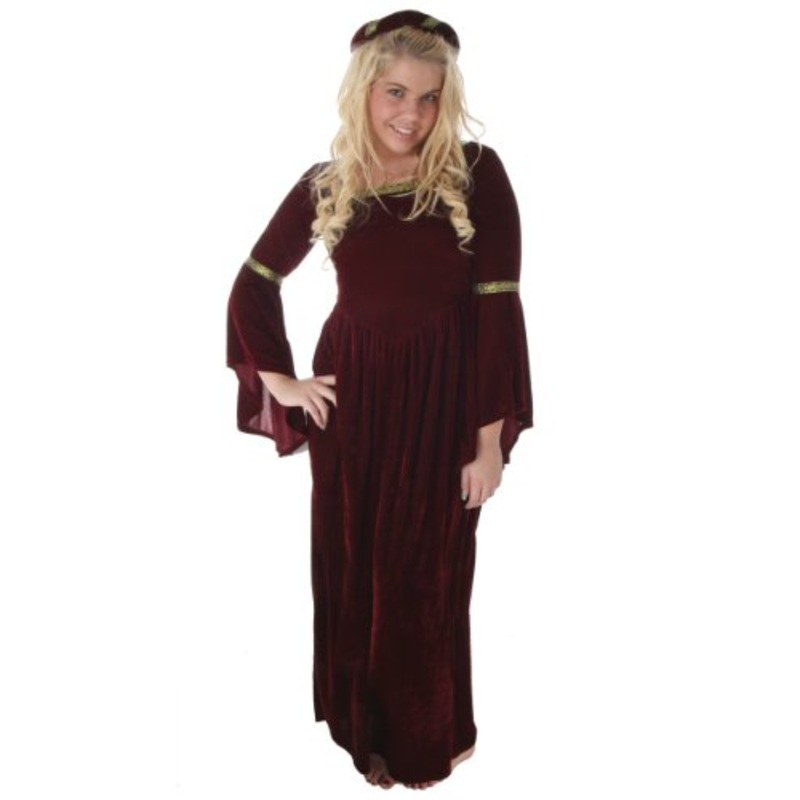 This Lady Gwenhyfar Costume is truly fit for a medieval queen! It’s rich velvet fabric is trimmed with brocade ribbon for a regal look.
