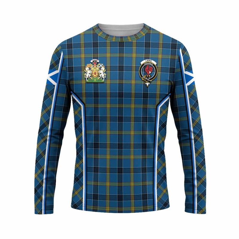 Laing Tartan Crest Long Sleeve T-Shirt Scotland Coat of Arm Flag Style