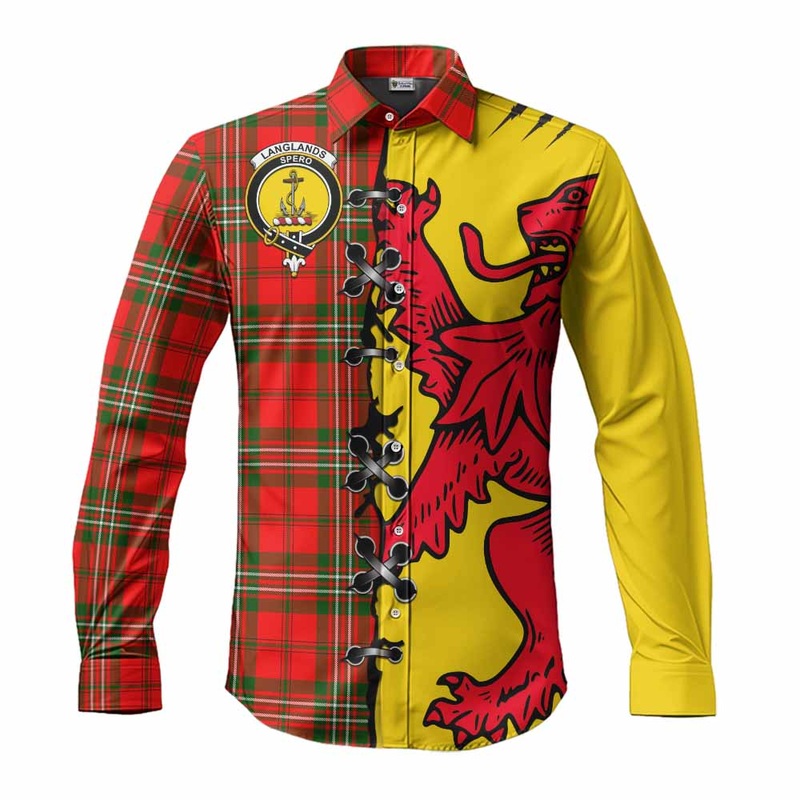 Langlands Tartan Family Crest Long Sleeve Button Shirts Lion Rampant Honor