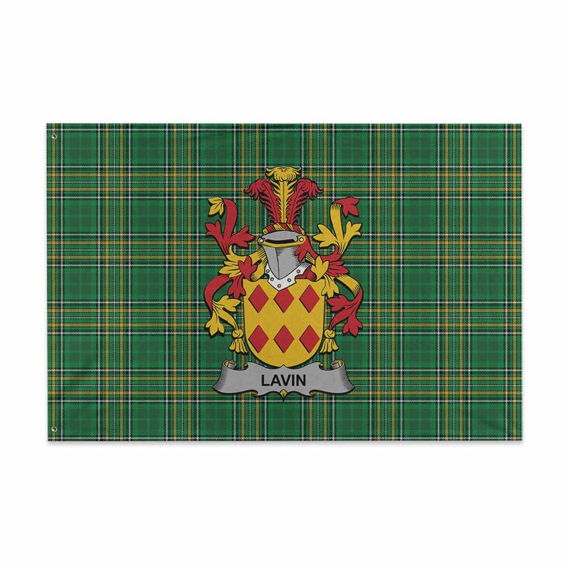 Lavin Irish Clan Tartan House Flag with Coat of Arms