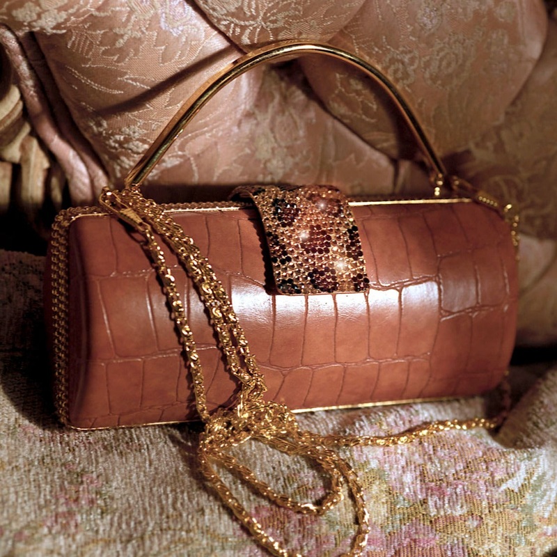 - Either silver or gold base is made with the same color crystals; red, white, blue. Interior leather will match either gold or silver base.