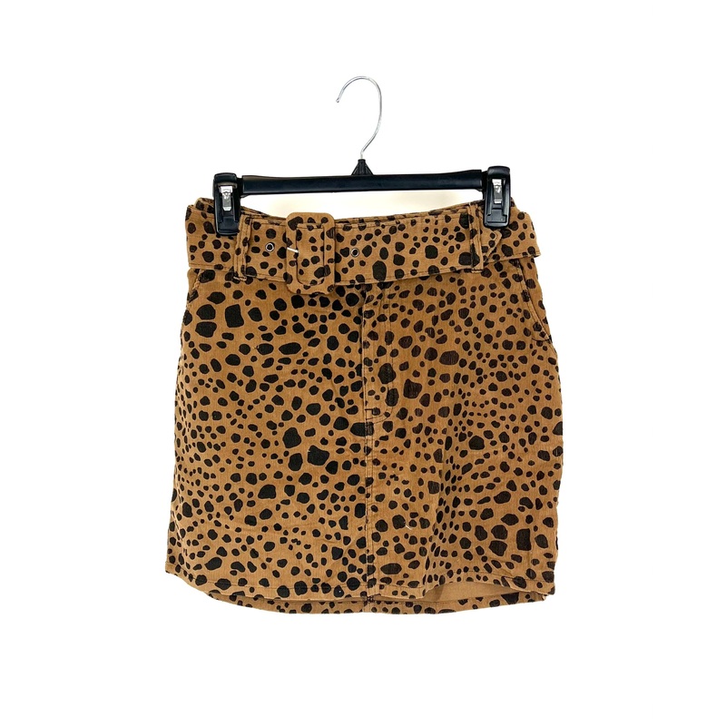 Brand new - donated from the designerShow Me Your Mumu brown leopard print mini skirt in a soft, demin-like material, with a thick removable belt, front and back pockets, and a front zip and button closure.Size 2665% cotton, 35% polyesterEstimated Original