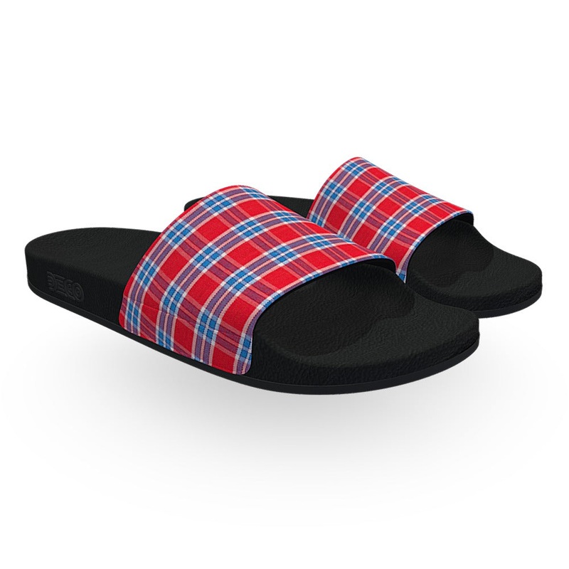 DAL40810898Light Blue and Red Tartan Flannel Slide Sandals