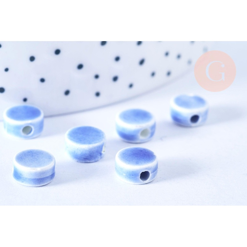 A set of 10 light blue enameled porcelain disc beads These are beautiful handmade beads. Diameter: 8-8.5mm Thickness: 5mm Hole: 2mm Other porcelain and ceramic beads are available: https://www.etsy.com/fr/shop/GingerlilyFrance?search_query=perle+porcelaine