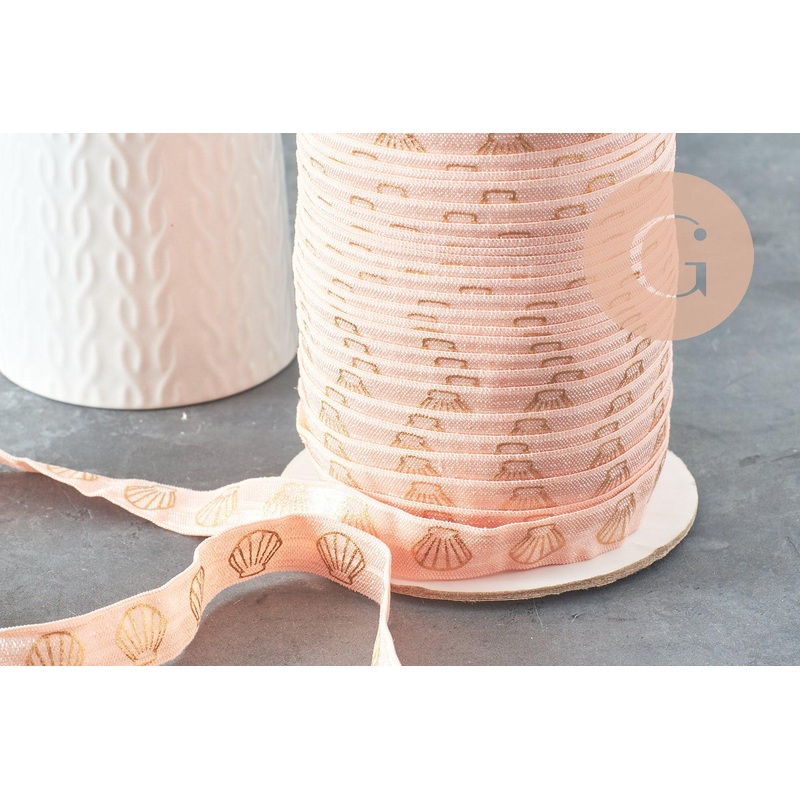 This flat and wide fancy elastic seashell pattern ribbon will be ideal for DIY sewing creations, customization, clothing, as well as for the creation of costume jewelry... You will love this wide elastic ribbon with its gold pattern on a pink background. H