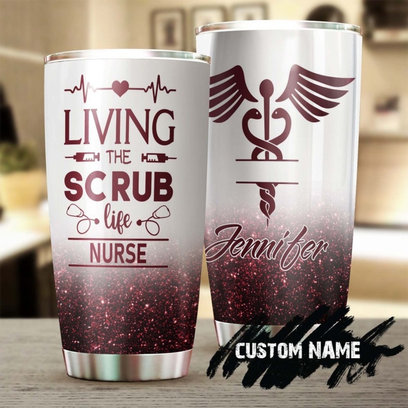 Living The Scrub Life Caduceus Personalized Nurse Tumbler-Funny Nurse Tumbler-Appreciation Nurse Gift-Nurse Thank You Gift-Gift for Nurse