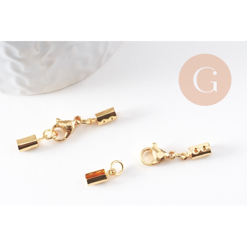 A kit consisting of a clasp, rings and tips for creating jewelry. Guaranteed no release of nickel, lead or cadmium. Quality gilding, very resistant Length: 36mm Bits: 9.5x4x3.5mm Clasp : 12x7x3.5mm Sold individually Ionized 304 stainless steel, very resist