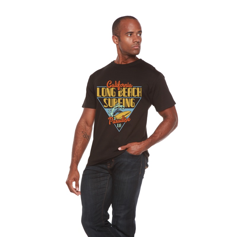 Long Beach Surfing Printed Men’s Bamboo Viscose/Organic Cotton Short Sleeve Graphic T-Shirt Medium Black