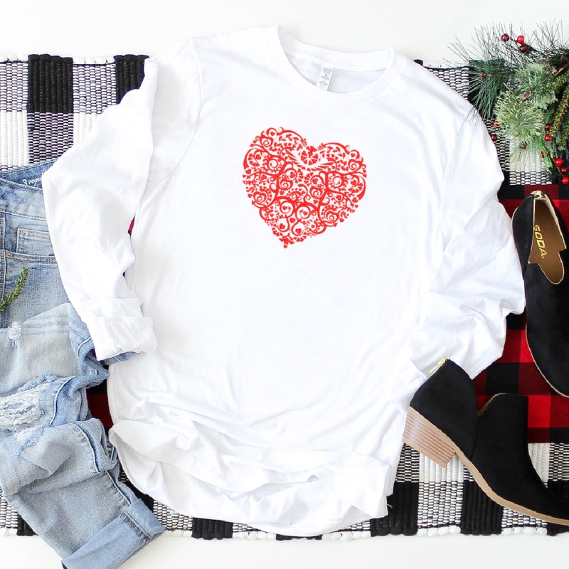 Long Sleeve: Red Damask Heart-Plus Sizes