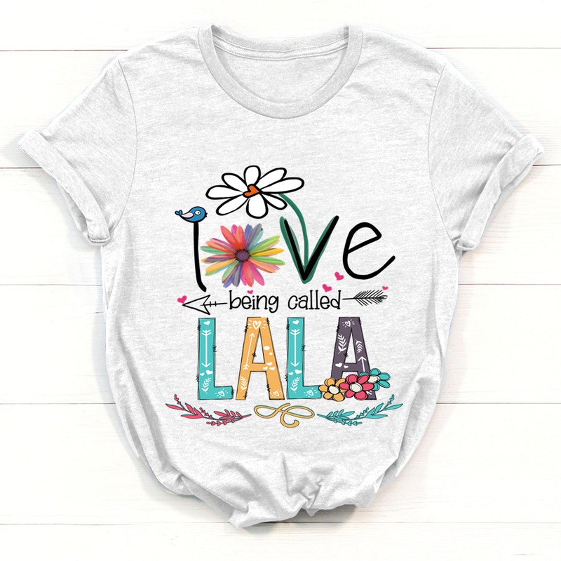Love being called Lala Daisy Flower Font Art Flying BirdHigh-quality fabric material with lots of beautiful colors for the whole family, mimi, nana,grandma, grandpa, papa, daddy, baby, mommy, brother...This design also can be an awesome present for grandpa