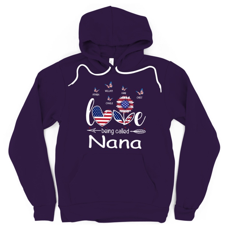 Love being called Nana FlagThis hoodie is perfect to escape the cold. It covers everything from the hips to the neck, allows the person wearing it to stay toasty at all times. Plus, with the side-front pockets, the phone and the wallet can stay warm, too.