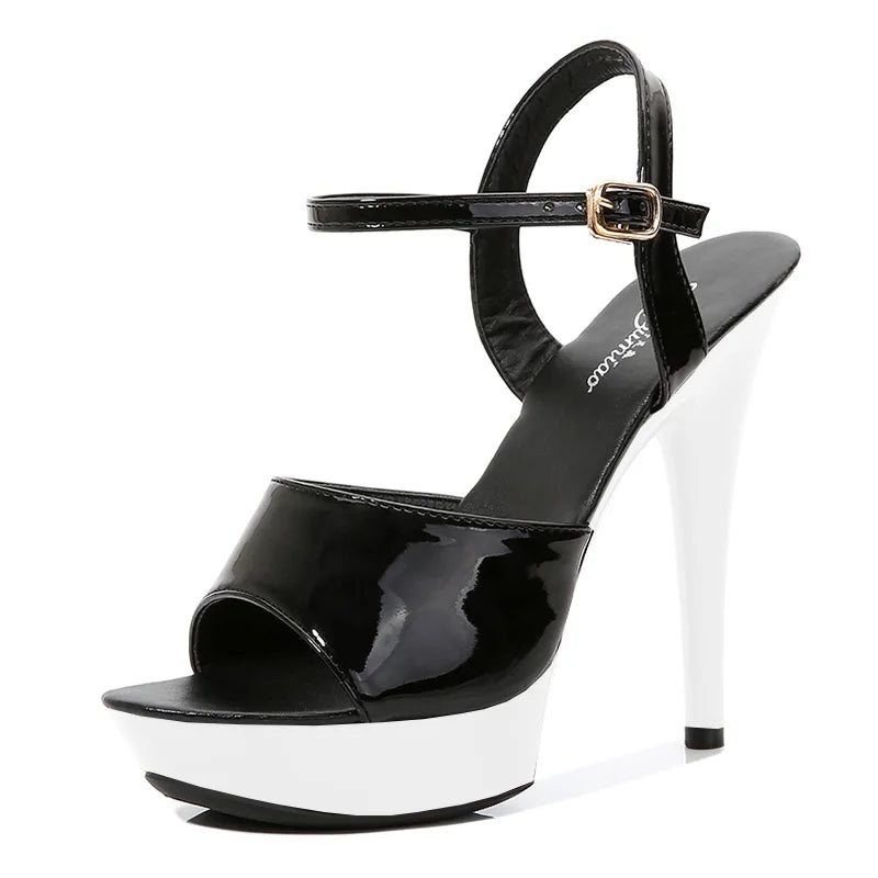 Crafted from sleek patent leather, these sandals feature an alluring front & rear strap design with a secure buckle closure, ensuring a flawless fit for any occasion. The open vamp and sexy silhouette make them a go-to choice for parties, nights out, or anytime you want to exude confidence.