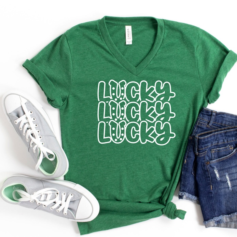 Lucky Lucky Lucky (White) V-Neck