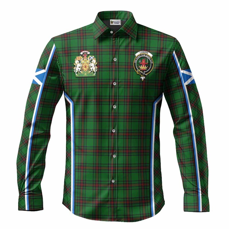 Lundin Tartan Crest Long Sleeve Button Shirts Scotland Coat of Arm Flag Style