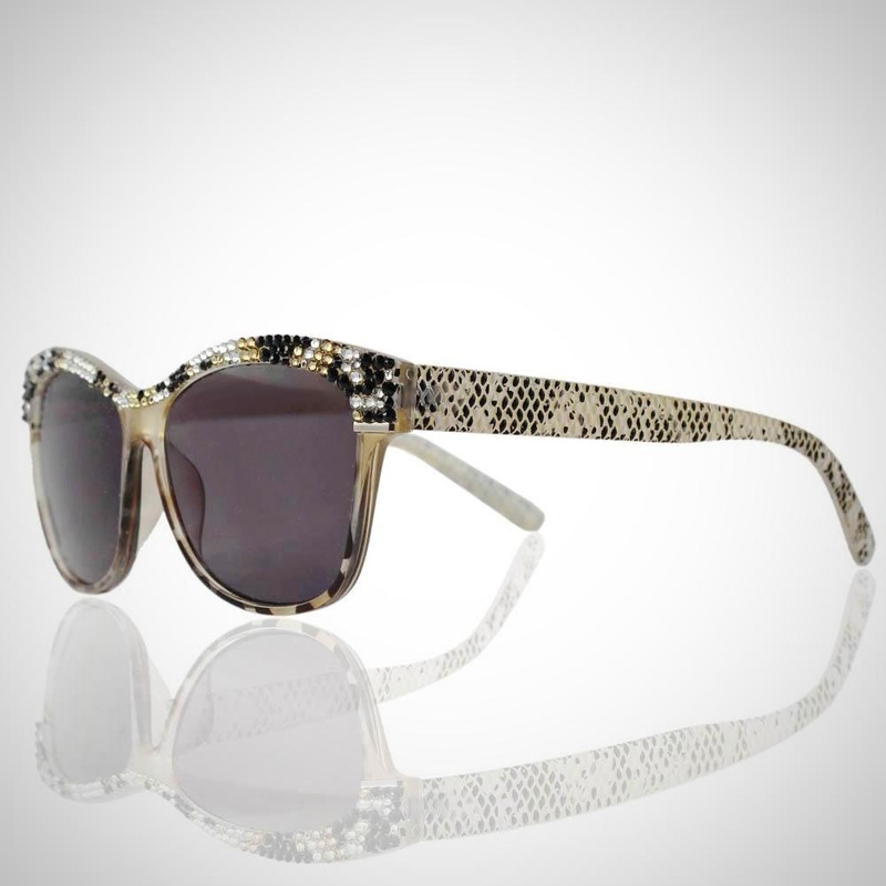Sunglasses with reading lensesInjection frame,embossed pattern on templesUse the most impact-resistant material available for the lens to offer maximum eye protectionEmbellished with crystals, which are set by Jimmy Crystal's expert craftsmanship. This pro