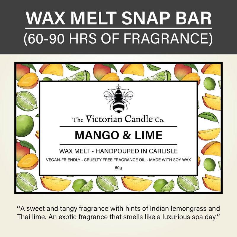Mango & Lime Wax Melt Snap BarAn exotic fragrance that smells like a luxurious spa day.Mango & Lime offers a sweet and tangy fragrance with hints of Indian lemongrass and Thai lime.NOTESTop - Lemon, LemongrassMiddle - Lime, Mango, Peach, MelonBase - Pineap